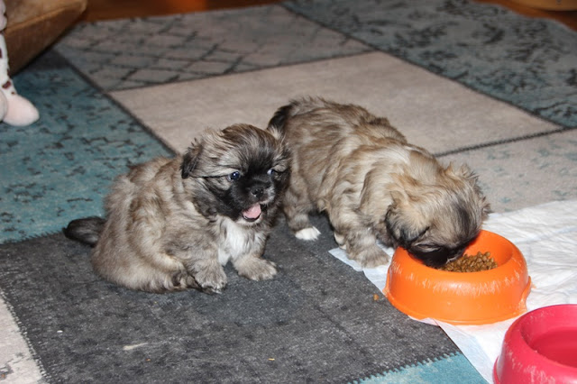 Tre søte smågutter i farta. De er bare fem uker ennå, så de skal utvikle seg mer før de reiser 8 uker gamle.